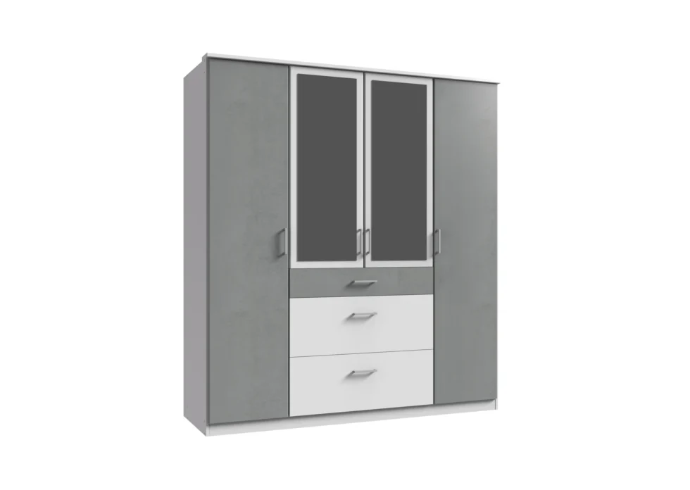 Tesoro White And Grey 4 Door Wardrobe 180 CM Wide