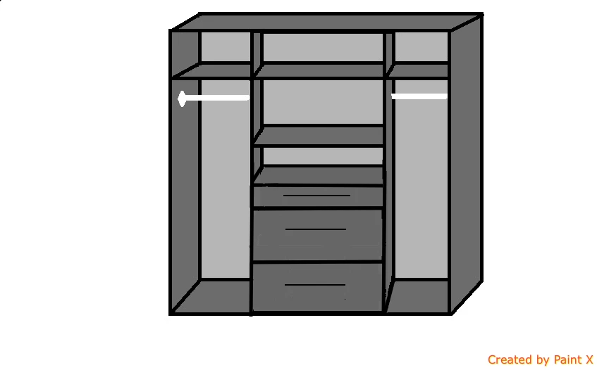 The click 4 Door Wardrobe has a sleek and contemporary look,finished with White And Grey. The wardrobe has trendy handles along with the 2 centre doors being mirrored which give the wardrobe a modern look. This robe gives you 3 different areas of storage. The centre section is divided with 3 drawers at the bottom and 2 shelves behind the 2 mirrored doors, the 2 outer sections are fitted with a single shelf and hanging rail in each.