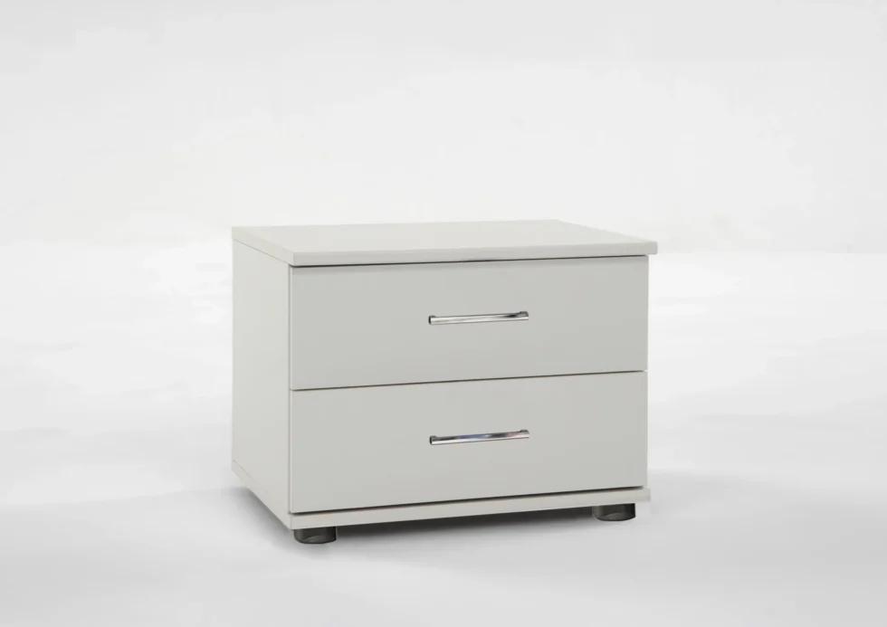 Davos 2 Drawer Bedside cabinet finished in white for a great look, The bedside has Trendy long handles for a pleasant and modern look.All TJ`S products are designed and built in Germany and constructed to a high standard. All TJ`S ranges are subject to full quality checks before leaving the factory to ensure a consistent standard of product.