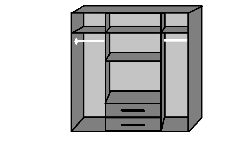 The DUO 4 Door 2 Drawer Wardrobe offers a combination of hanging, shelving and drawer space. The wardrobe has trendy long handles along with the 2 centre doors being mirrored which give the wardrobe a modern look.This robe gives you 3 different areas of storage. The centre section is divided with 2 drawers at the bottom and 2 shelves behind the 2 mirrored doors, the 2 outer sections are fitted with a single shelf and hanging rail in each