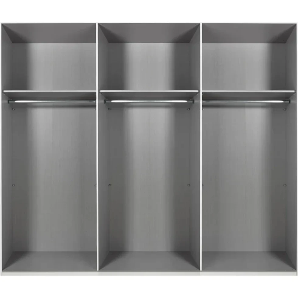 his Ernie Sliding Wardrobe is Elegant And Will Give A Contemporary Look To Your Bedroom.This wardrobe has three sections, each of which has a hanging rail and shelf which is perfect for additional storage space. The Wardrobe is supported by a strong and durable walnut carcase that will complete the look of your bedrooms.The large mirror on the front is perfect for dressing in the morning.it has three hanging rails three large shelves