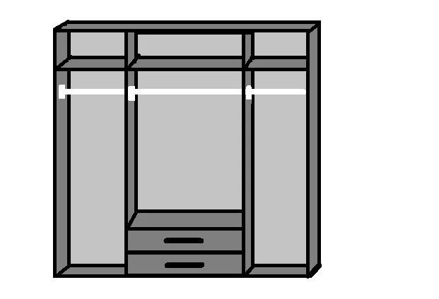The Osaka 4 Door 2 Drawer Wardrobe offers a combination of hanging, shelving and drawer space. The wardrobe has trendy long handles along with the 2 centre doors being mirrored which give the wardrobe a modern look.This robe gives you 3 different areas of storage. The centre section is divided with 2 drawers at the bottom and 1 shelf and 1 hanging rail behind the 2 mirrored doors, the 2 outer sections are fitted with a single shelf and hanging rail in each.