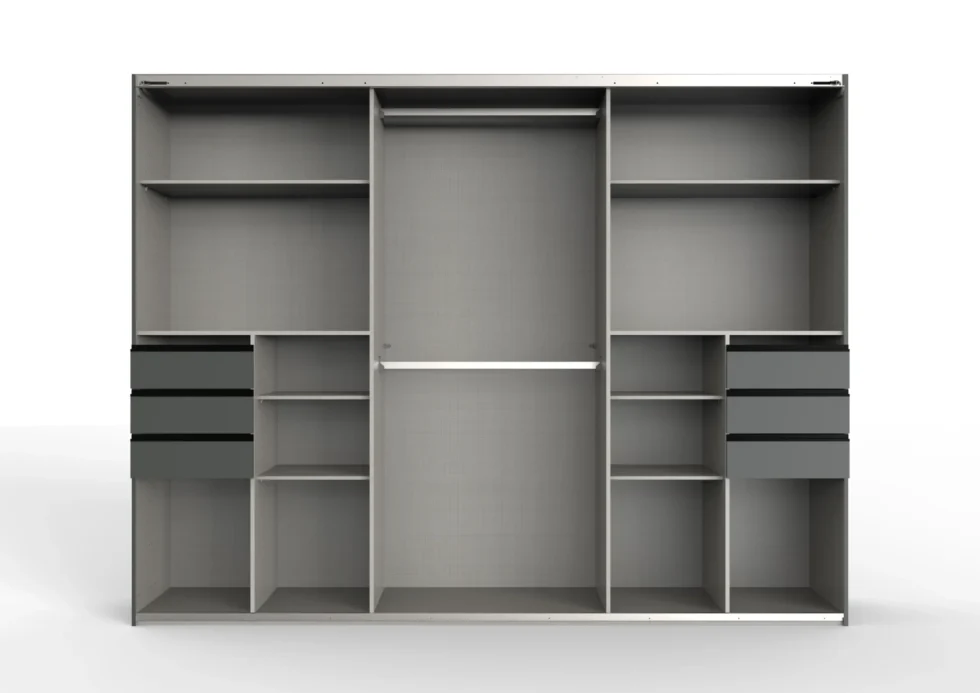 This saigon 270cm Sliding Wardrobe is Elegant And Will Give A Contemporary Look To Your Bedroom.This wardrobe has three sections, 2 hanging rail,4 large shelves,4 small shelves and 6 drawers which is perfect for additional storage space. The Wardrobe is supported by a strong and durable carcase that will complete the look of your bedrooms.The large mirror on the front is perfect for dressing in the morning.