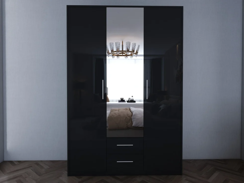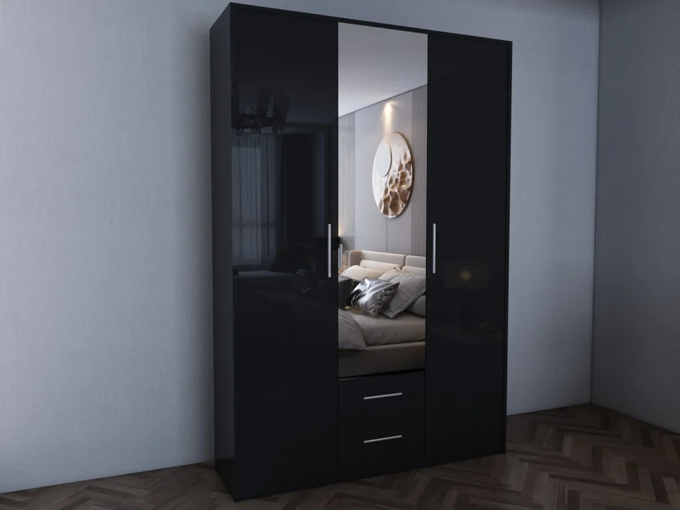 Tesoro Gloss Black 3 Door 135cm Wardrobe 135 CM Wide