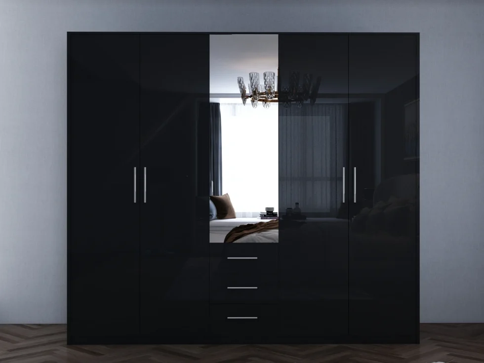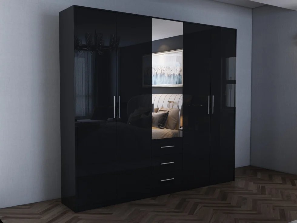 Tesoro Gloss Black 5 door 200cm wardrobe 200 CM Wide