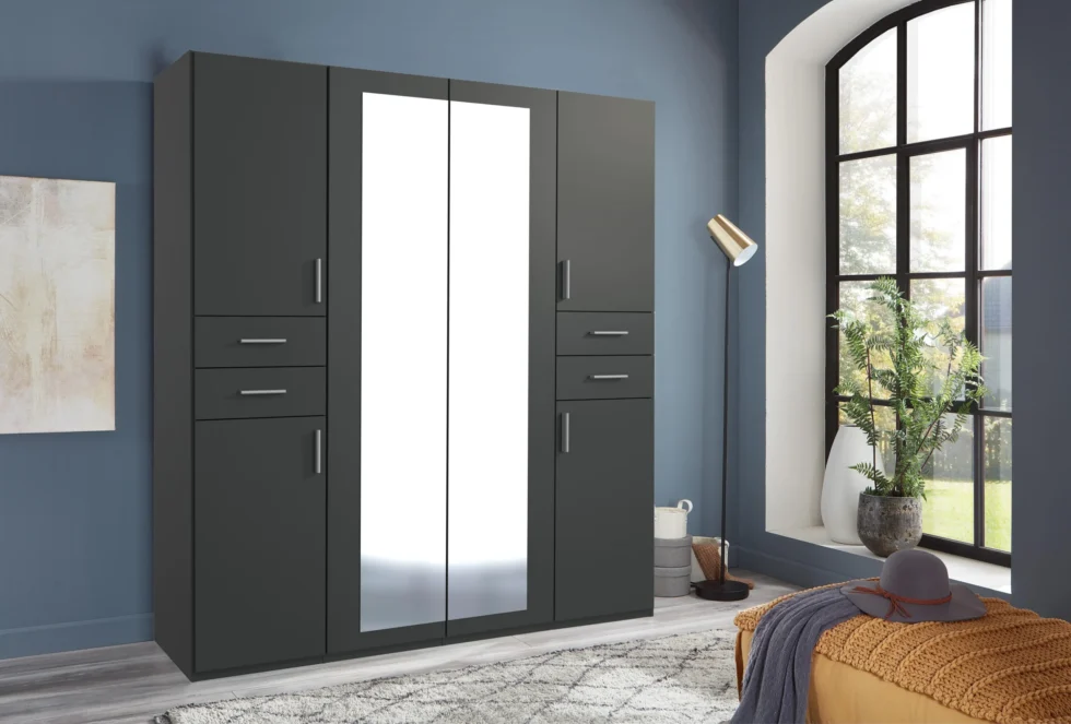 Tesoro Graphite 4 DOOR Wardrobe 180 CM Wide