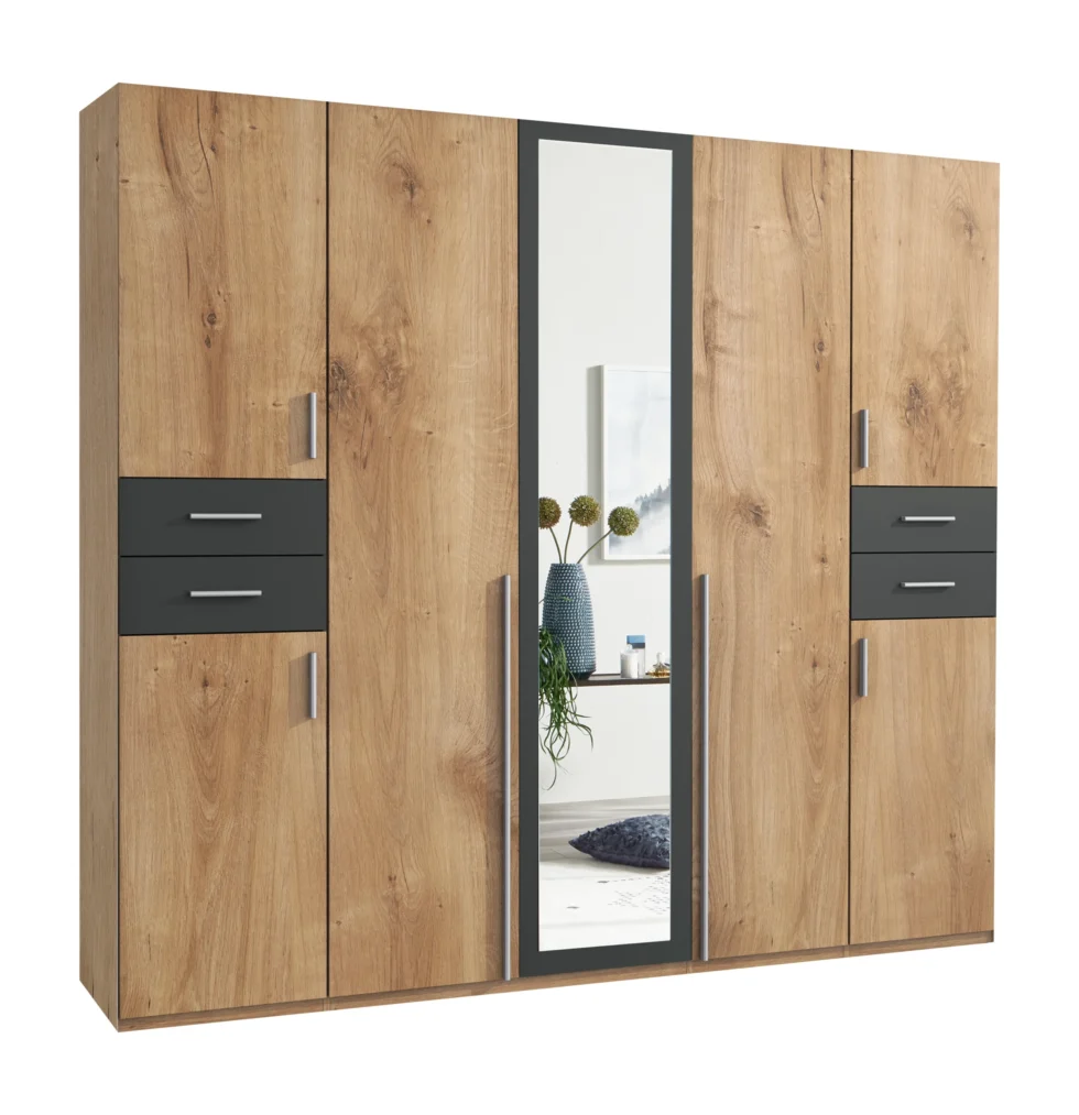 Tesoro planked oak And graphite 5 Door Wardrobe 225 CM Wide