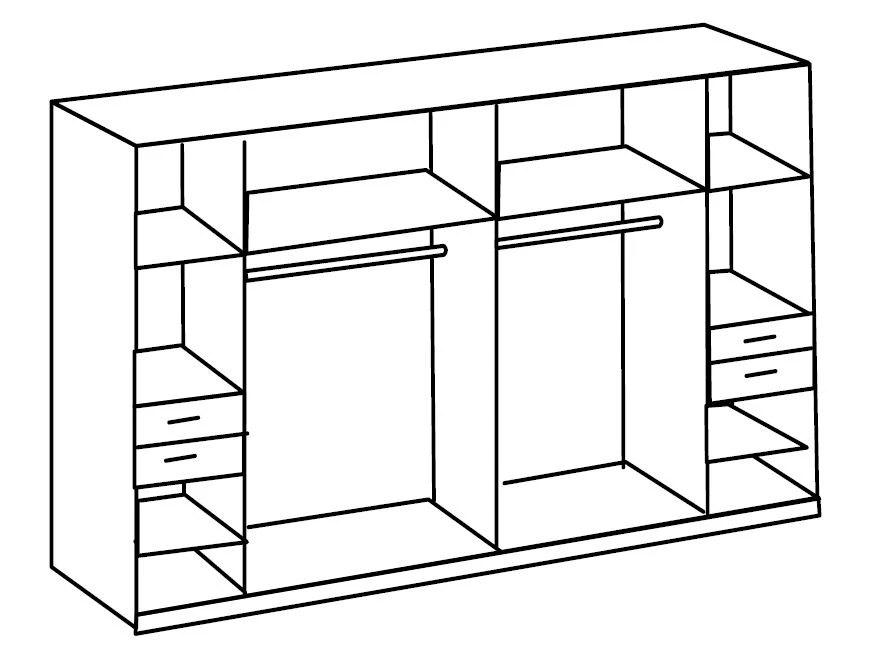 The vegas planked oak 5 Door wardrobe has a sleek and contemporary look,finished with Mirrored door.The wardrobe has trendy handles which gives the wardrobe a modern look .The wardrobe has 2 hanging rail and total 8 shelves divide in four section.